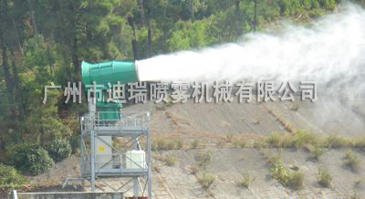高塔式噴霧風(fēng)炮一般安裝在混凝土澆筑、鋼架結(jié)構(gòu)搭建的平臺上,依靠噴霧風(fēng)炮射程遠(yuǎn),水平旋轉(zhuǎn)角度大進(jìn)行大面積噴霧除塵。