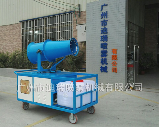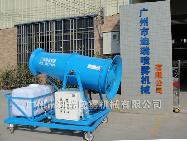 高壓噴霧風(fēng)炮的工作原理將自來水經(jīng)過專業(yè)凈化處理后運用高壓設(shè)備在高壓單元內(nèi)部形成強大的工作壓力,通過專用的噴嘴形成50~150微米左右的水霧微粒, 微小的霧粒大量聚集并漂浮于空氣中形成白色云霧狀的霧氣效果不產(chǎn)生水滴,其顆粒及其細(xì)小表面張力基本上為零,能迅速吸附空氣中的灰塵顆粒形成有效的控塵, 且通過高速風(fēng)機加速后大面積擴撒,對大型開闊范圍的控塵降塵相當(dāng)有效;若為噴霧除臭藥液可使藥物分子隨霧粒的擴散充分與空氣中的臭氣分子接觸并發(fā)生反應(yīng), 有效的清除臭氣廢氣。噴霧風(fēng)炮還能夠迅速吸收空氣中的熱量蒸發(fā),快速有效吸熱降低周圍的溫度并增加空氣濕潤度。